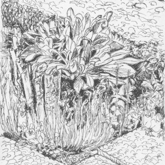 Bild: Noch nicht erkennbare Nelke, skizziert in meinem Garten Ende März 2020